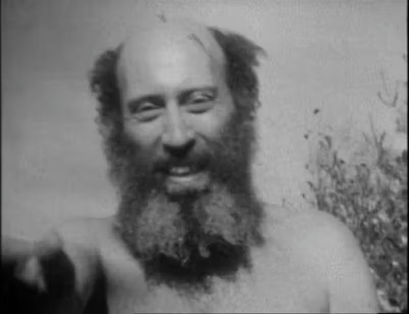 Marx-lookalike Warren Brodey emerging from the lake at the quarry.